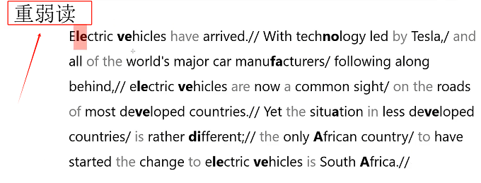 接下来,我们来看一下文章的重弱读。文中加粗字体是需要重读的部分,灰色字体是可以弱读的部分。