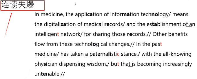 1)文中标红的字体是要失爆的字体,如:intelligent network,past medicine,paternalistic stance,but that,标红的字体都是需要爆破的。