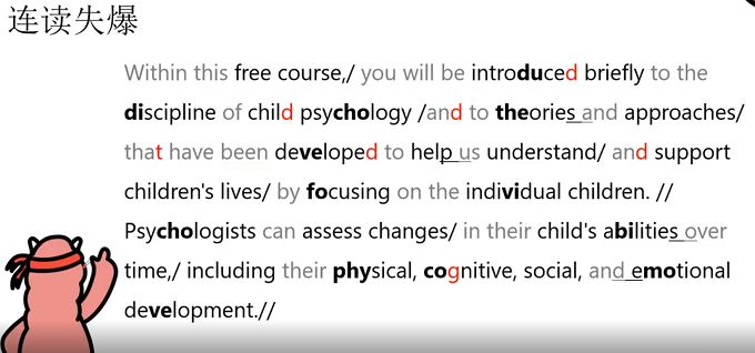 如:theories and,help us等。失爆的地方如:introduced briefly,child psychology等,则标红的字母因受到爆破而可不发音。