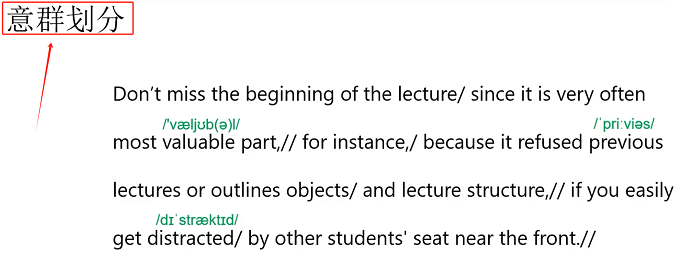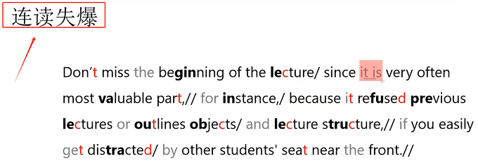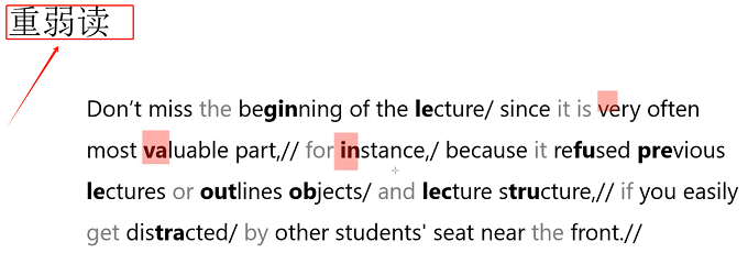 2)文中加粗字体是需要重读的部分,如:Don't miss the beginning of the lecture since it is very often most valuable part,加粗字体是可以重读的部分。